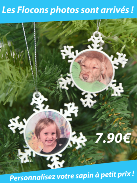 Flocon à accrocher sur le sapin, décoration photo en Aluminium.